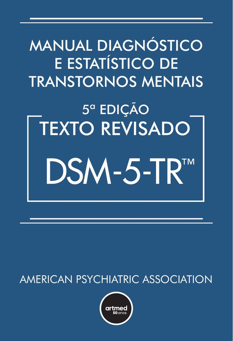 O Manual diagnóstico e estatístico de transtornos mentais, 5ª edição, texto revisado (DSM-5-TR), é recurso imprescindível para o diagnóstico e a classificação de transtornos mentais, seja na prática clínica, seja na pesquisa na área de saúde mental.Com contribuições de mais de 200 especialistas e baseado na literatura científica mais recente, o DSM-5-TR traz os códigos da CID-10-MC implementados desde 2013 e apresenta um novo transtorno na Seção II – o transtorno do luto prolongado. Além disso, os textos de todos os transtornos foram amplamente revisados, incluindo as seções sobre características associadas, desenvolvimento e curso, fatores de risco e prognóstico, questões diagnósticas relativas à cultura, questões diagnósticas relativas ao sexo e ao gênero, marcadores diagnósticos, associação com pensamentos e comportamentos suicidas, diagnóstico diferencial e muito mais.Este manual é recurso fundamental para psiquiatras e demais profissionais da saúde, incluindo psicólogos, enfermeiros, terapeutas ocupacionais, bem como assistentes sociais e especialistas forenses e legais.