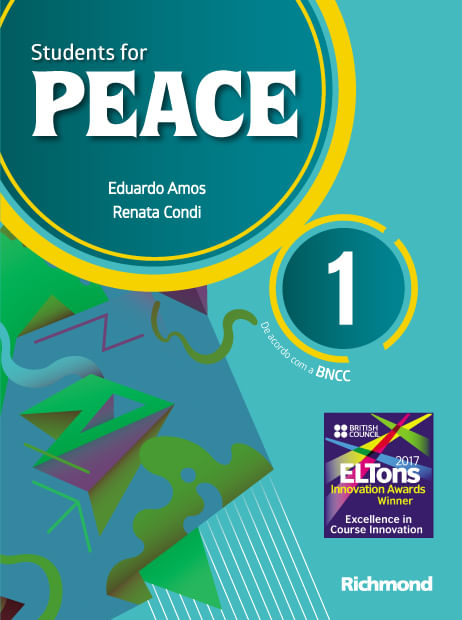 NOVIDADES DESTA EDIÇÃONovas aberturas de capítulos, com tópicos atuais de acordo com o BNCC, que estimulam a reflexão e o compartilhamento de ideias sobre tópicos e realidades diferentes.ELTONSA coleção Students for PEACE foi contemplada com o prêmio ELTons Innovations Awards.Concedido pelo Conselho Britânico a iniciativas de inovação na área de ensino de inglês como língua estrangeira, o ELTons é o prêmio internacional mais importante neste segmento. Em sua 15ª edição, em 2017, o ELTons teve 115 inscrições de vários países. Students for PEACE recebeu o prêmio de Excelência em Inovação em Materiais de Ensino para o ensino de inglês como língua estrangeira, a primeira vez que materiais para ensino de inglês produzidos no Brasil receberam um prêmio como esse.Students for PEACE, concebido pelo renomado autor Eduardo Amos, já foi adotado por diferentes escolas em todo o Brasil.