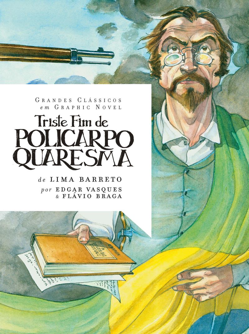 Escrito por Lima Barreto em 1911, Triste fim de Policarpo Quaresma é uma brilhante sátira aos ideais positivistas e nacionalistas que nortearam a Primeira República. A história narra as desventuras de Policarpo Quaresma, personagem que encarna melhor que qualquer outro em nossa literatura o credo ufanista e suas desilusões. Nos desenhos de Edgar Vasques, roteirizados por Flávio Braga, este clássico da literatura brasileira ganha nova vida, demonstrando a atualidade da visão ácida de Lima Barreto sobre os descaminhos do projeto brasileiro de nação.